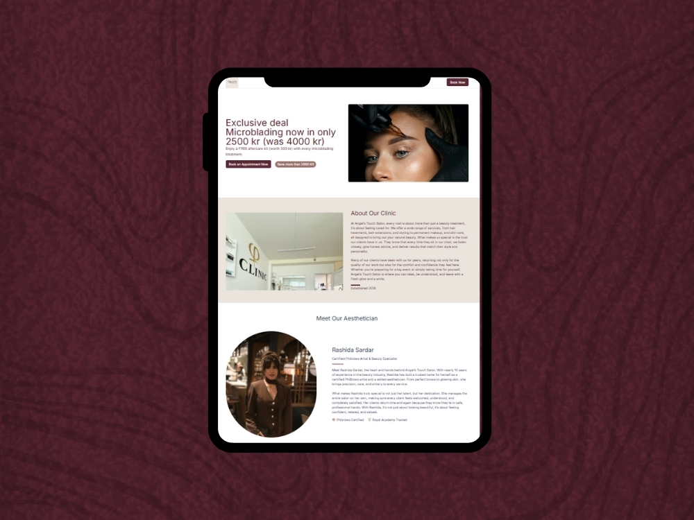 To help Angel’s Touch grow their client base, we created a complete digital strategy focused on making it easy for potential clients to discover and book their services. We built a dedicated, high-converting landing page that highlighted all their services, special offers, and expertise in a clear and appealing way. This made it simple for visitors to understand what the salon offers and take action, whether by booking an appointment or sending an inquiry.