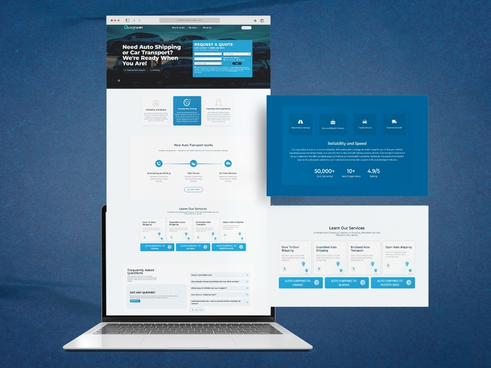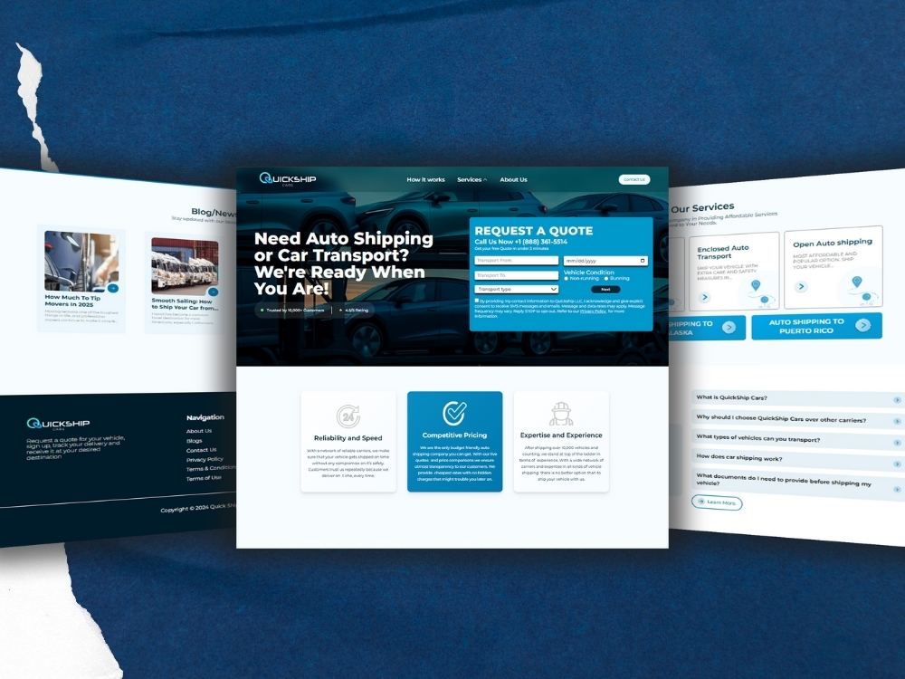 To solve Quickship Cars’ challenges, we created a complete digital solution that made both client-facing and internal processes smooth and efficient. First, we designed a modern, user-friendly website that clearly explained their services, made it easy for clients to send inquiries, and built trust with a professional look. Behind the scenes, we developed a custom Transport Management System (TMS) that centralized all bookings, vehicle information, dispatch management, and client communication in one place. This system automated repetitive tasks, reduced errors, improved response times, and allowed the team to manage multiple shipments effortlessly while keeping clients informed at every step. The result was a faster, more reliable service and a much better experience for both the team and their customers.